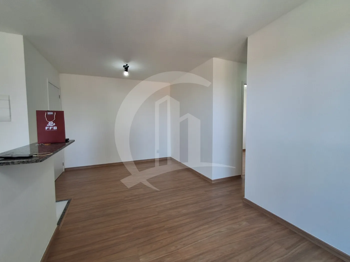 O imóvel conta com 2 quartos, sendo 1 suíte, e banheiro social com box.
