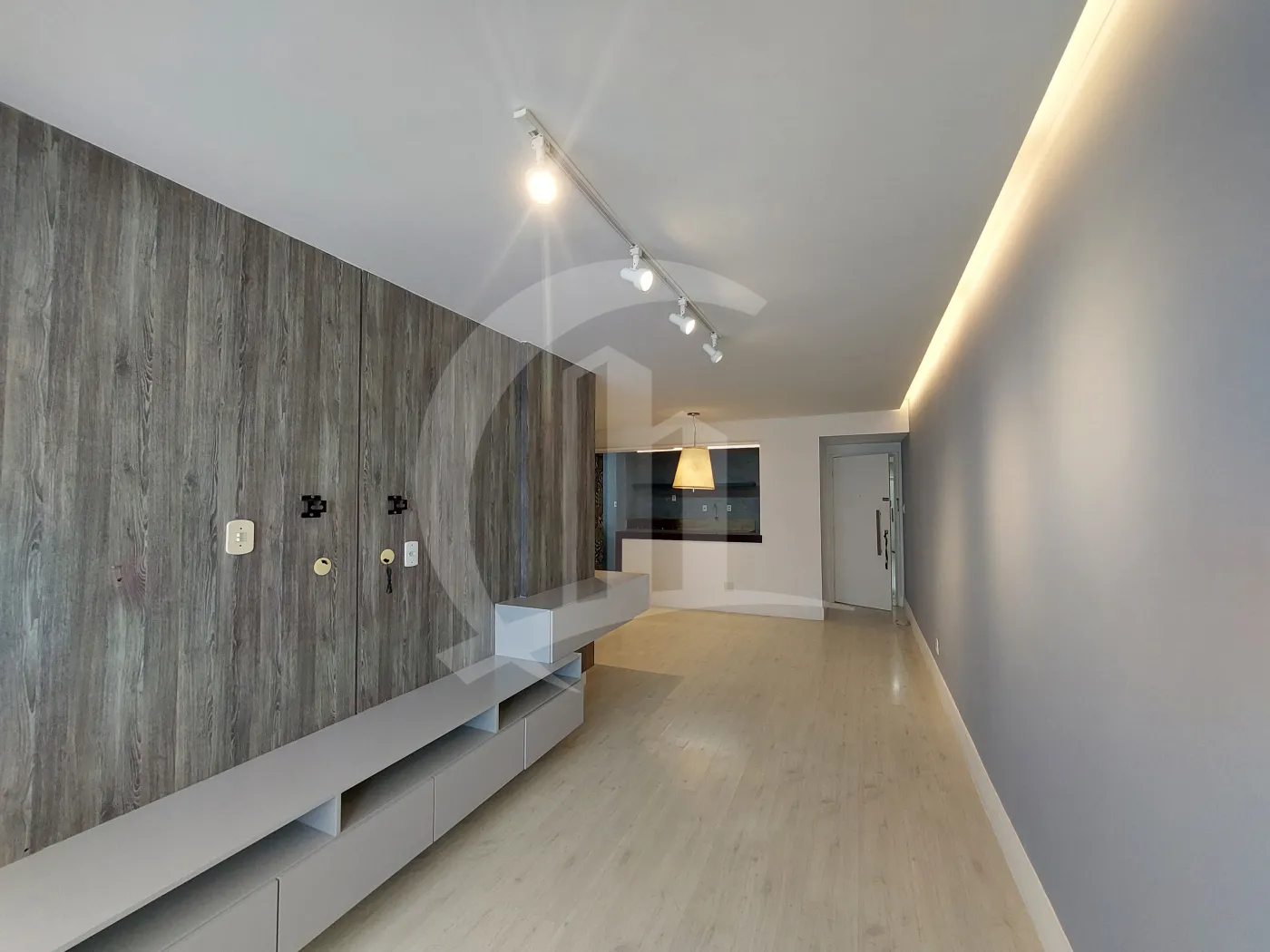 Sala ampla integrada à varanda arejada