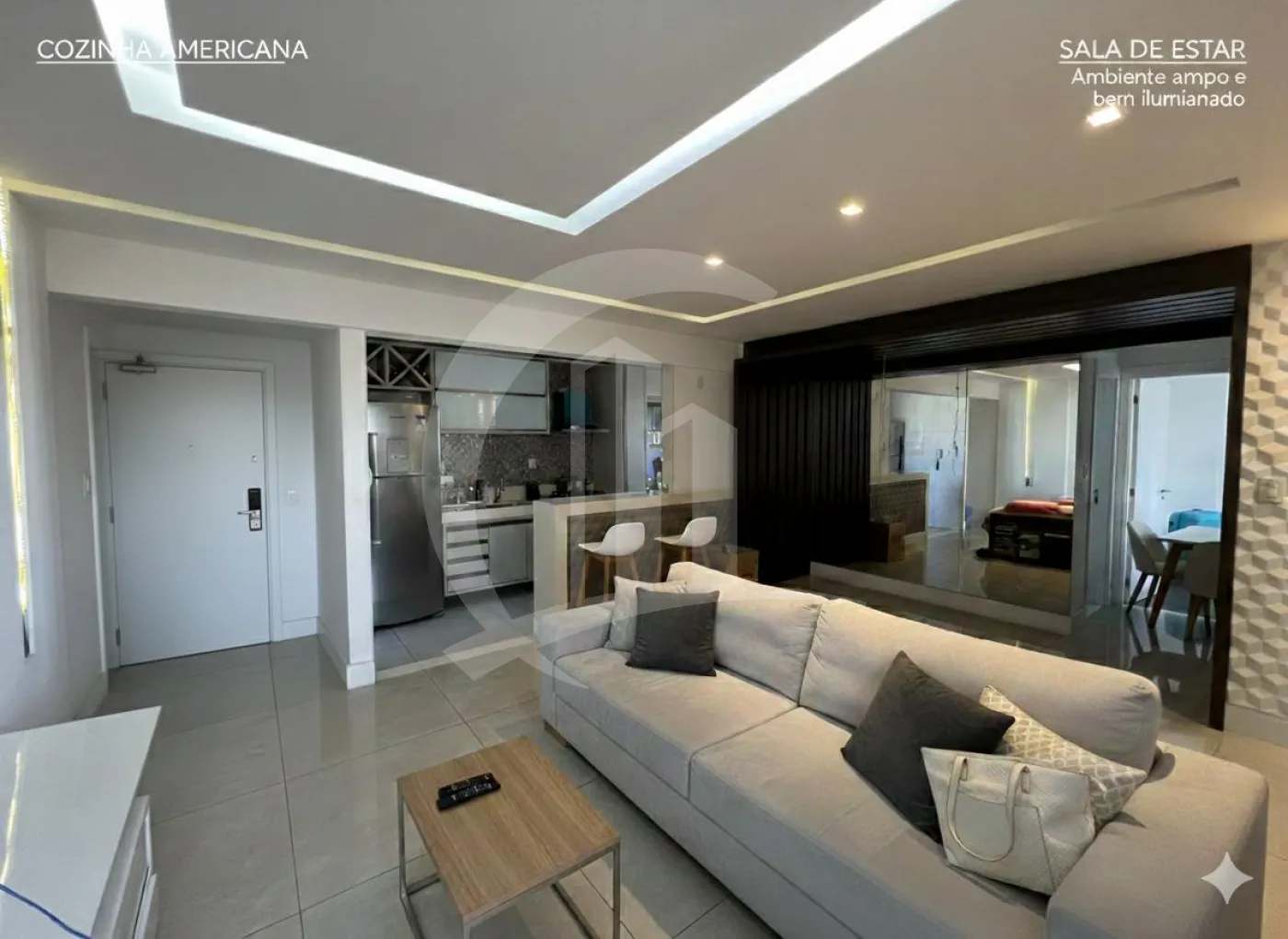 O imóvel conta com planta bem distribuída, integrando conforto, funcionalidade e sofisticação. A sala foi ampliada e integrada à cozinha, criando um ambiente contemporâneo, ideal para receber amigos e família. O projeto de iluminação em gesso valoriza ainda mais os espaços.