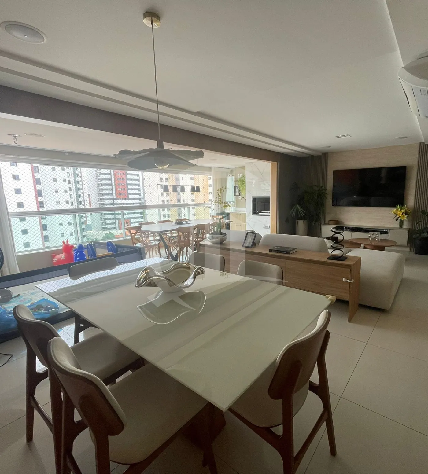 Sala ampla integrada à varanda gourmet