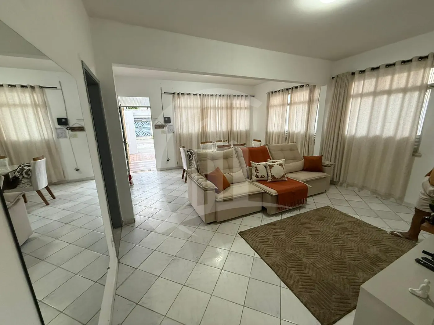 Casa 1: 4 quartos, sala ampla, cozinha, área de serviço e garagem.