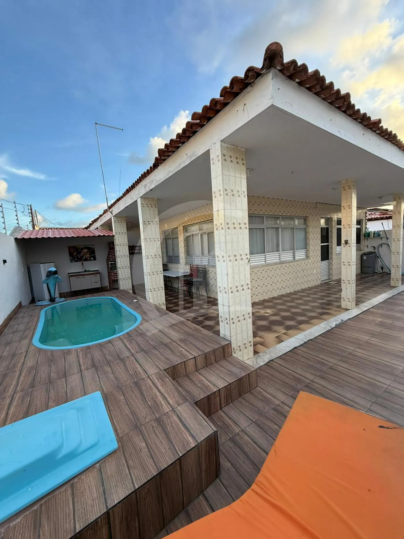 A área de lazer dispõe de piscina compartilhada entre as quatro unidades, proporcionando um ambiente agradável para momentos de descanso.