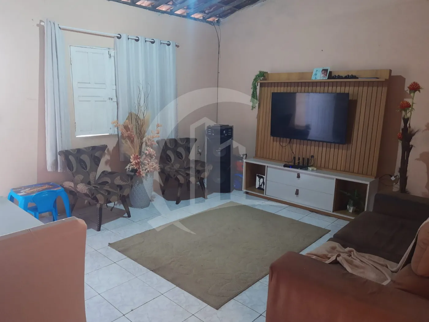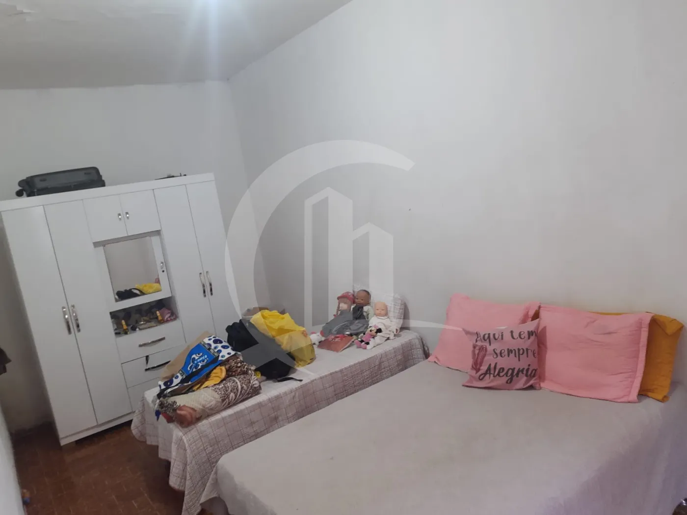 Casa térrea: sala, cozinha, banheiro, 3 quartos, varanda e quintal;