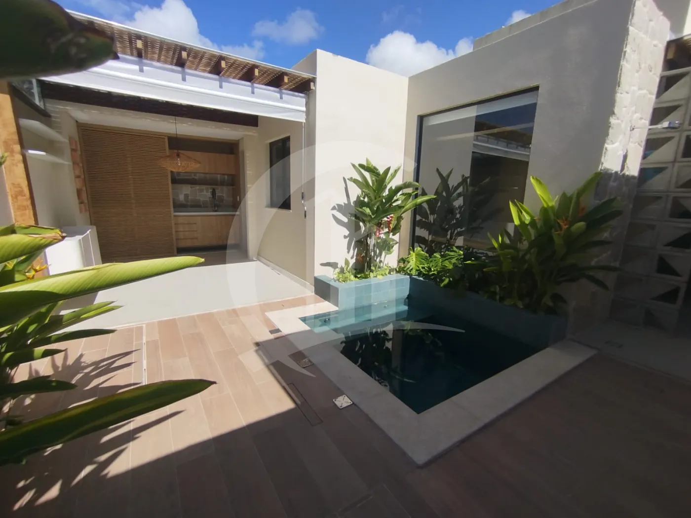 Área com piscina e churrasqueira