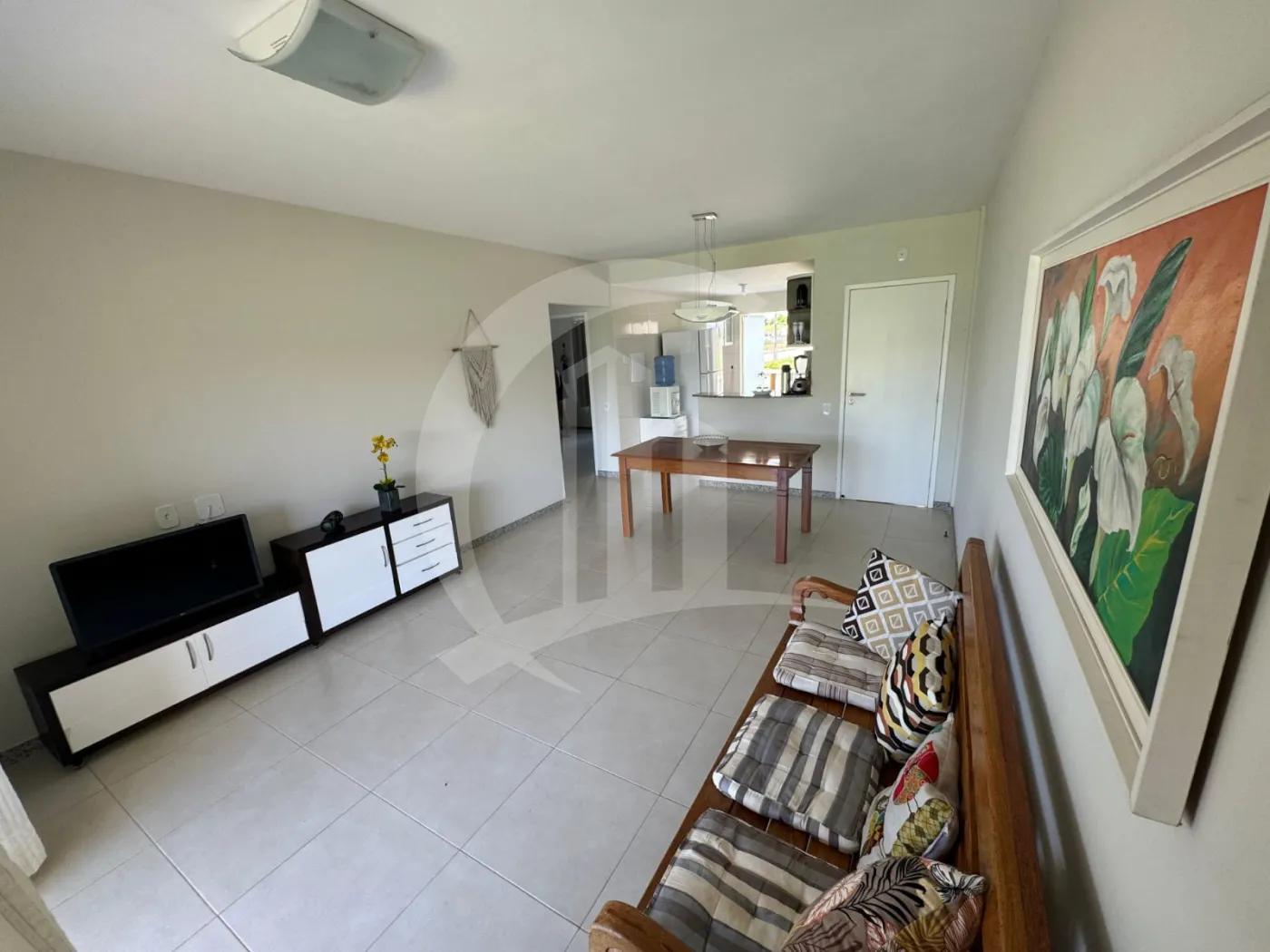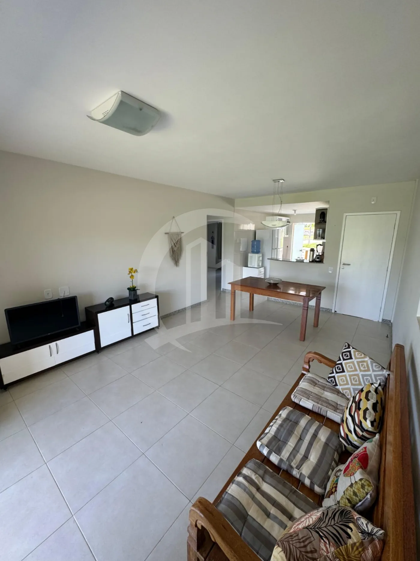 Sala de estar/jantar agradável, varanda para momentos de relaxamento e um banheiro social completo.